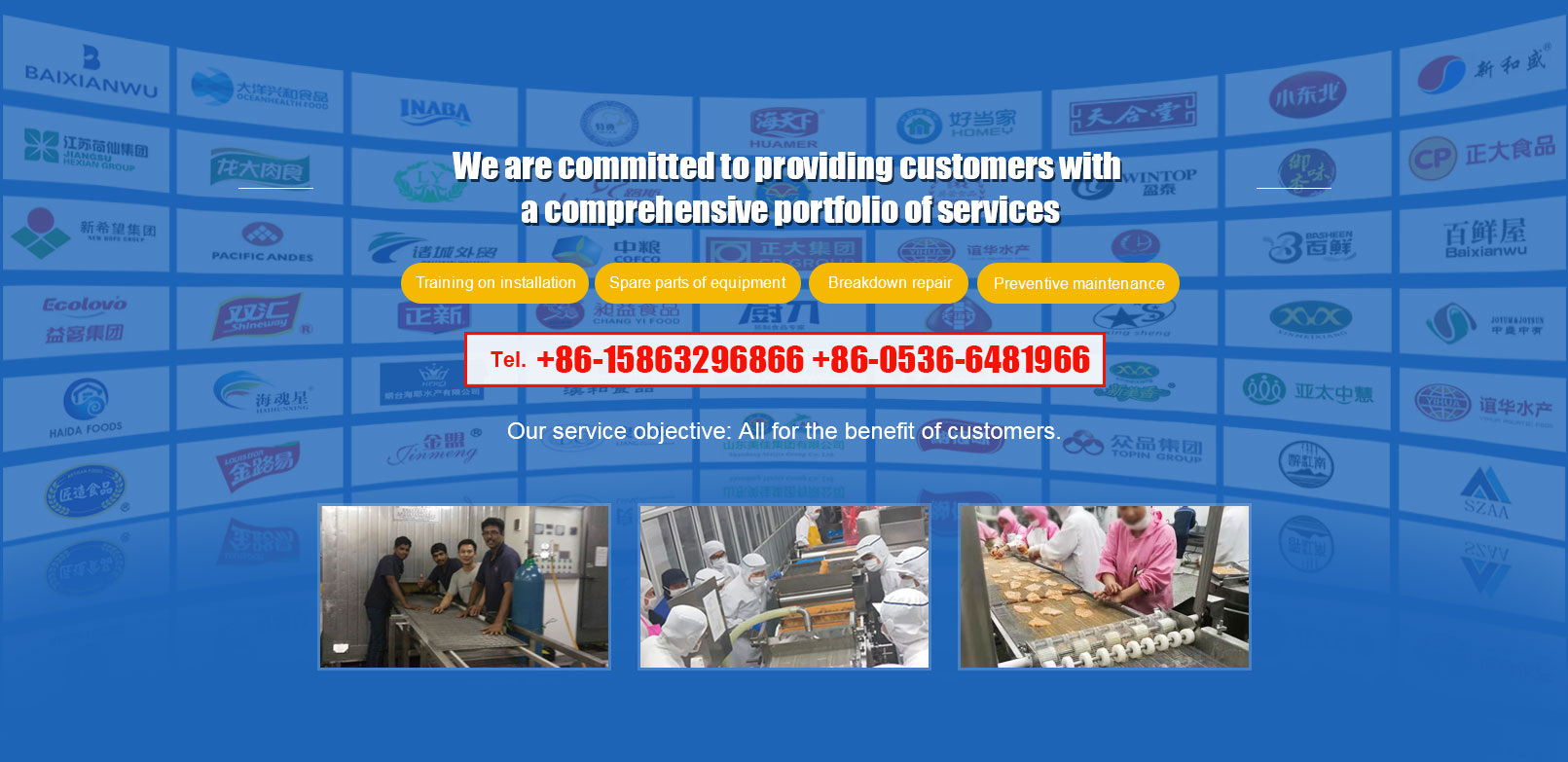 Taking the needs of the customer as the purpose and insisting on the business tenet of "innovation, heart, concentration", we provide you with integrated services, such as food processing technical advice, design and equipment production and manufacturing, installation and commissioning, equipment operation guidance, production line maintenance and maintenance, etc.