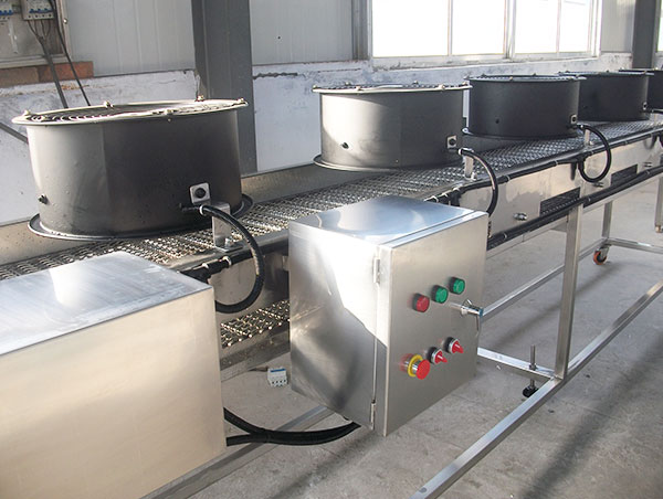 The air cooling line transports through the conveyer belt and completes the product cooling under the functions of upper cooler. It is especially suitable for the cooling of frying food and the rapid cooling of products after steaming and halogenation; The length of the equipment and the number of fans can be customized according to the requirements. The machine is composed of frame, sprocket, fan, motor, conveyor belt, and has the advantages of convenient transportation, easy installation, fast speed, power saving and so on.